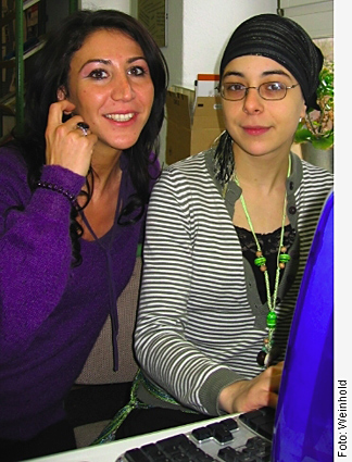 frisieren Yanina und Lena (vorn, von links nach rechts) die professionellen