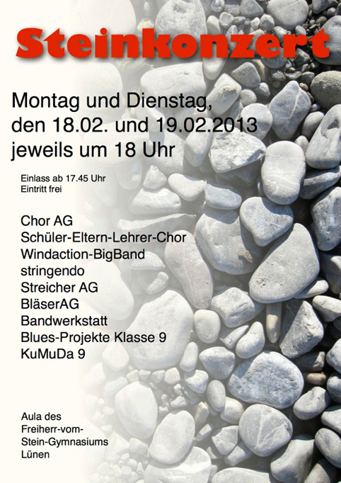 Lange Zeit gab es am FSG keine Schülerzeitung, bis vor ein paar Jahren unsere Schülerin Anh-Thu Nguyen gegenüber Frau Stallmeister, Deutsch- und Geschichtslehrerin am FSG, ihr Interesse an Schülerzeitungsarbeit zu erkennen gab. Anh-Thu scharte eine Reihe interessierter Mitschülerinnen und Mitschüler um sich, Frau Stallmeister half Anh-Thu bei den ersten Schritten mit der Layout-Software und brachte sie zusammen mit Fabian Hofacker, FSG-Lehrer für die Fächer Sozialwissenschaften und Erdkunde, der die Zeitungsmacher seitdem berät und bei der Abwicklung der Finanzen unterstützt. Jetzt hat zum Jahresbeginn 2013 die 14-köpfige Redaktion um Chefredakteurin Anh-Thu schon das vierte steinzeit-Heft veröffentlicht und es gibt nur ein Urteil: Chapeau!
