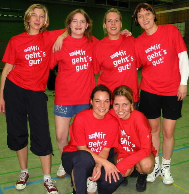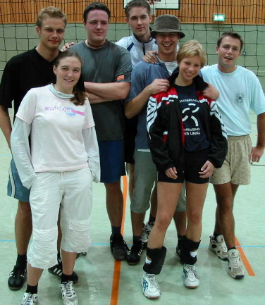 | Reibungslose Organisation | Markus Fischer hatte wie schon in den letzten beiden Jahren die sportliche Organisation des Turniers übernommen. Mit kühlem Kopf und geschickter Menschenführung sorgte er für einen reibungslosen Ablauf. Trotz der teilweise hart umkämpften Matches wurde nach jedem Spiel freundschaftlich abgeklatscht. Insgesamt herrschte eine Stimmung vor, als würde der Steingeist persönlich mitbaggern. In diesem Sinne freue ich mich schon auf das 10. Volleyballturnier der Ehemaligen, hoffentlich wieder mit vielen roten Schnecken, gesunden Schweinis und unzähligen alten und jungen Steinis. Die Namen wurden bei der Anmeldung genannt, sie stimmen nicht bei allen Mannschaften genau mit den Personen überein, die tatsächlich gespielt haben. |