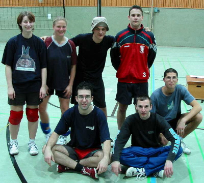 | Die ältesten waren (wie immer) die Spieler der Mannschaft Ü40, alle Mannschaftsmitglieder haben 1979 ihr Abitur gebaut, hatten während der Schulzeit bei Martin Hirschmann, dem Begründer des Turniers, Sportunterricht und waren darüber hinaus in seiner Volleyball-AG.  Interessanterweise trifft sich die Mannschaft nur einmal im Jahr, nämlich zum Ehemaligen-Turnier. Trotz exzellenter Einzelspieler gelang der Mannschaft bisher noch nie der ganz große Wurf. In diesem Jahr wurde der dritte Platz belegt. |