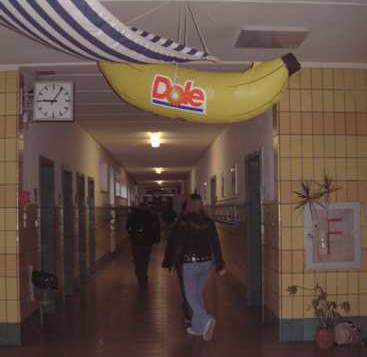 | Im Flur wurden die Vorbeikommenden eingestimmt auf die landeskundliche Schau, die während der gesamten Woche dort gezeigt wird. Themen der Schau sind unter anderem - vorkoloniale, koloniale und nachkoloniale Geschichte der Karibik