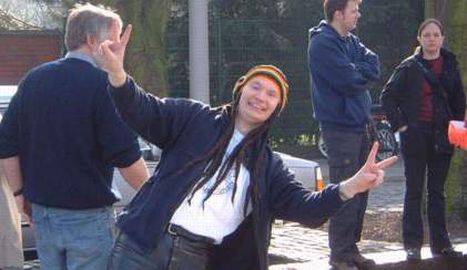 | Beschwingte Rasta-Locken-Träger berauschten sich am »Stein«-Geist, der über dem Schulgelände schwebte. |