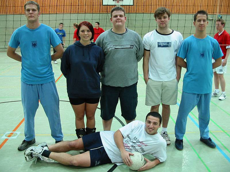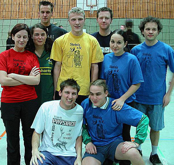 | Das 10. Weihnachts-Volleyball-Turnier der Ehemaligen (Teil 2) | | | Die Spielberichte vom Weihnachts-Volleyball-Turnier der Ehemaligen Von Hans Stemmerich | Steinis e.V. (Abi 95-02)  Stehend: Anne-Janine Müller, Miriam Schulte, Heiko Radmacher, Michael Müller, Christian Witte, Jasmina Mujkanovic, Fiete S.; vorn: Daniel Rudolph, Kai Rohde Auch »Steinis e.V.« konnte kein Spiel gewinnen, Diplomphysiker Rudi kritisierte den mangelnden Einsatzwillen seiner Mannschaft, die sich wohl für die anschließende Party schonen musste. | | Abi 02 (Abi 02)  Susanne Daniel, Maike Marzischewski, Marco Marzischewski, Hillevi Lausten, Tim Renker, Bernd Peters Trotz Verstärkung durch Susanne Daniel (geb. Tautz) konnte auch »Abi 02« kein Spiel gewinnen. Problematisch könnte in Zukunft das immer größer werdende Leistungsgefälle zwischen den einzel-nen Mannschaften werden. Gute-Laune-Mannschaften wie die »Ruhrpottschnecken« oder »Steinis e.V.«, die kein einziges Spiel gewonnen haben, stehen Quasi-Vereinsmannschaften wie »Ralfs Rache« oder Ex-Schulmannschaften wie U 50 gegenüber. Ein interessanter Vorschlag kam (per E-Mail) von Erhard Lewke (U50),dem Senior aller Beteiligten: »Wie wäre es, wenn bei der Anmeldung auch eine Selbsteinschätzung der Spielstärke mit angegeben wird (etwa so: Wir spielen um den Pokal, Mittelfeld, Just for Fun). Dann können die stärkeren Mannschaften in einer Gruppe sofort den Pokal unter sich ausspielen und der Rest freut sich, mal wieder einen Volleyball zu sehen«. | | Olympia 2012 (Abi 91, 92, 01)  Hinten: Martin Schulte, Frank Nordhoff, Matthias Flechtner, Michael Drees; vorn: Julia Gödecke, Thorsten Finke Olympia 2012 verpasste als zweitbester Gruppenzweiter nur knapp die Finalrunde. Erst nach mehr-maliger Überprüfung der Computertabelle konnten sich die Olympioniken mit dem Schicksal abfin-den. Bis 2012 ist ja noch reichlich Zeit zum Trainieren... | | Daesch (Dem Alter eine Chance) (Abi 88 90)  Oben: Bernd »Wanniger« Warnecke, Andreas »Pampi« Pamp, Jörg »Holli« Holleck, Andreas »Kraffi« Krawczyk, Sabine Kienast-York, Frank Hensler; unten: Marc Stommer, Katja »Otto« Offermann, Stefan »Schweini« Feik, Martin Färber Die Maskottchen Leon und Connor gehören zu Sabine Kienast-York und Jörg Holleck. Ein starkes Team, bei dessen Anblick so mancher Lehrer an lange Disziplinarkonferenzen erinnert wird leider nur Platz zwei in Gruppe C und nur vom späteren Turniersieger geschlagen. | | Bob Marleys Volleyballhelden (Abi 99, 00)  Hinten: Sascha Munka, Olivia Mabeck, Björn Bornhold, Holger Bramkamp, Duffy Feldner; vorn: Ozan Yildiz Ein dritter Platz in der schweren Gruppe B Bob Marley wäre stolz auf euch. | | Die Erwerbslosen 02/03 (Abi 02)  Hinten: Mareike Feist, Helen Neumann, Patrick Freyth, Normann Gieseke, Mario Wachowiak; vorn: Moni Piecha, Christian Kwiatkowski Ebenfalls einen dritter Platz belegten die um Punkte bettelnden, aber sehr sympathischen »Erwerbslosen 02/03«. | | Weiter auf der Folgeseite! | |