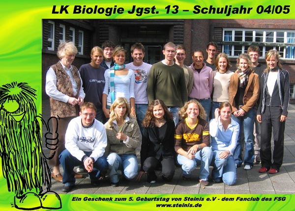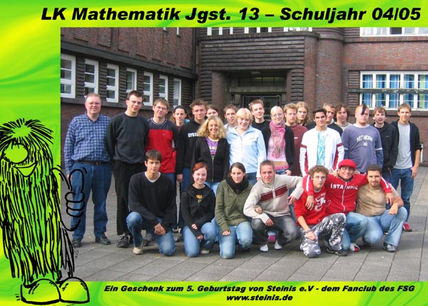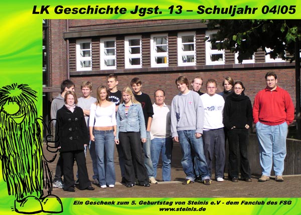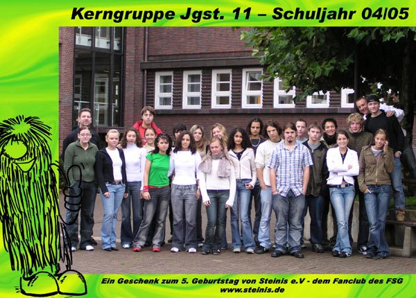 | … und schenkt jedem Schüler das Foto | »Steinis e.V.«, der »Fanclub des FSG«, rief am Mittwoch, dem 29. September, die Schülerinnen und Schüler des FSG vor die Kamera – und zwar diesmal, anders als im Jahr zuvor, auch die der Zwölfer- und Dreizehner-Oberstufenkurse. Ein paar Tage später waren die Bilder fertig und wurden in den Klassen verteilt. |