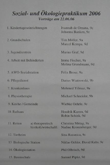 Eindrücke vom Präsentationsnachmittag des sozialen und ökologischen Praktikums 2006 (Seite 1)HomeChronikErstes Halbjahr | Zweites Halbjahr