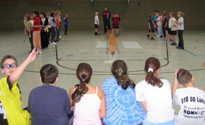Hallo, liebe Website-Besucher!!! Wir schreiben vom 6. Dezember. Ihr fragt euch bestimmt, warum wir über den 6. Dezember schreiben, weil das doch nur ein langweiliger Nikolaustag ist!? Doch bei uns auf dem FSG ist der 6. Dezember für die 5er und 6er immer ein besonderer Tag, weil es an diesem Tag ein Völkerballturnier für diese Klassen gibt. Und darüber möchten wir berichten. Hier sind erstmal die Mannschaftsnamen und die Spielergebnisse von den »Neuen«, also den 5er-Klassen: | A1 | 1.VC FSG | A2 | Die unbesiegbaren Steinis | | B1 | Die flotten 15 | B2 | Das Völkerball-team + | | C1 | PIZZA FREAK 05 | C2 | DIE DÖNER GÖTTER | | D1 | Steini-Kracher | D2 | Crazy Dragons | |