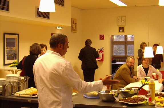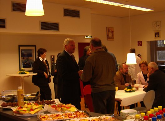 | Cafeteria offiziell eröffnet | Herr Suckrau, stellvertrender Schulleiter des FSG, schreibt: Die neue Cafeteria, die seit Anfang Dezember 2006 im Betrieb ist, wurde am Freitag, dem 26. Januar 2007, offiziell eröffnet. Alle Beteiligten, die zum Gelingen dieses Projekts beigetragen haben, waren vom Betreiber, Herrn Barry Mohomed, eingeladen worden, sich durch ein reichhaltiges Buffet verwöhnen zu lassen. Neben Vertretern der Schulverwaltung, der »Zentralen Gebäudebewirtschaftung Lünen« (ZGL), des Bauvereins und außer dem Architekten Schreiter waren auch Vertreter der schulischen Gremien anwesend. Ihnen allen sei gedankt für die sehr konstruktive Zusammenarbeit und schnelle Umsetzung der Planung in die Wirklichkeit. Die Cafeteria bietet ein reichhaltiges Angebot an Speisen und Getränken im Zeitraum von 7.55 bis 14.30 Uhr täglich. Sehen Sie ein paar Impressionen von diesem Tag, versäumen Sie aber nicht, sich selbst ein Bild des neuen Treffpunkts am »Stein« zu machen! |