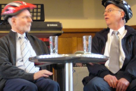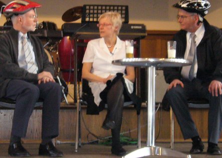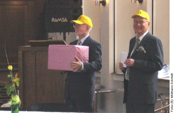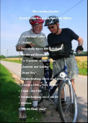 | Abschied vom Schuldienst | Oberstudienrat Frank Fellenberg und Studiendirektor Hanfried Müller wurden am Montag, dem 29. Januar, mit einer bunten Revue aus Musik und Sketchen, an der außer Schülern und Lehrerkollegen auch sie selbst mitwirkten, aus dem Schuldienst entlassen. Über drei Jahrzehnte lang arbeiteten sie beide am FSG: Herr Fellenberg seit Februar 1974 als Mathematik- und Physiklehrer, Herr Müller seit Februar 1972 als Englisch- und Deutschlehrer. Dabei war der Unterricht in den Fächern, in denen sie ursprünglich ihre Lehrbefähigungen erworben hatten, nur ein Teil ihrer Unterrichtsarbeit: Herr Fellenberg gab jahrelang auch Informatikunterricht, Herr Müller unterrichtete zudem »Praktische Philosophie« und bis zuletzt auch noch Latein. Auch über den Unterricht hinaus waren beide Lehrer vielfältig beruflich engagiert; Beratungslehrer in der Gymnasialen Oberstufe waren sie zum Beispiel beide mehrfach. Christian Reiners, Schülersprecher aus unserer Jahrgangsstufe 11, dankte den beiden Lehrern im Namen der FSG-Schülervertretung, Frau Funhoff tat das für die Lehrerschaft, die Vorsitzenden aller Fachschaften, denen die beiden Lehrer angehörten, sagten ihnen Dank für gute Zusammenarbeit und wünschten ihnen für ihre Pensionärszeit alles Gute im Namen der Fachkollegen. |