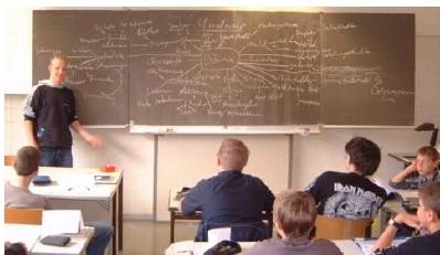 The first day of school is always a little unnerving, even if it’s your last. For us, the American exchange students, it was not only our first day of school, but our first day of school in a foreign country. It was a little overwhelming at first, so many people and all ages from 5th to 13th grade – something we’re not used to since our school is only grades 9-12. Some other surprises, or at least differences, were the chalkboards, teachers moving from class to class, breaks for the entire school, and the students’ schedules. The chalkboards here move up and down! and they fold out. It’s really cool for us, since at home ours are just mounted on the wall. It’s also more practical, so students can see from all over the room, even if they’re seated behind somone tall. In American schools, the teachers all have their assigned classroom and that’s where they stay... not here. Students and teachers alike travel from class to class. At our school, Webster Groves High School, usually the students are late to class, but here the teachers are sometimes late! We were surprised to learn that the entire school went on break twice a day, for a total of 35 minutes. The closest thing we have to that is our lunch break, which is about half an hour. Aside from the difference in cafeteria size, the lunch and »Pause« are much the same... students socialize, eat, goof off and maybe even do some homework due the next hour. Here, depending on your schedule, you may not have to come to school until late, or (in grades 11, 12 and 13) you may leave early, or come at eight a.m. and then leave for a few hours and then go back. This is very different from American schools because ours generally last from 8 a.m. to 2.30 or 3 p.m. In a way it’s nice to have school all at once and then be done, but then again, it would be nice sometimes to sleep in, leave early or have a long break in the middle of the day. All in all, the time spent at school is very worthwhile, fun, and cool. It may have taken us a day or so to assimilate ourselves, but we’re very excited and happy to be here and thank you for sharing your school with us. |