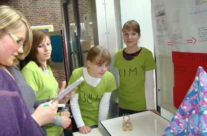 Lisa Bayer, Julia Thöne und Kim Motitschke (alle 6b) präsentieren ihr »Trittbrett«.