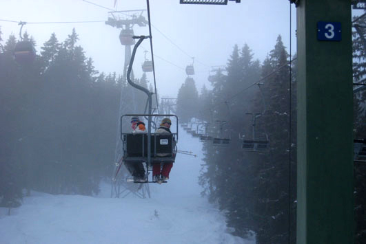 Der Anfang des zweiten Tages sah dem des ersten Tages ähnlich. Doch an diesem Tag wurde uns gesagt, dass das Wetter nicht so sonnig werden würde. Und so war es dann auch. Schneefälle und Nebel sorgten dafür, dass sich vor allem die Anfänger etwas unwohl fühlten.