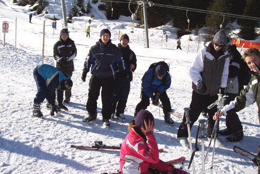 Nach einer Stärkung ging es dann weiter und als es wieder Zeit war, zur Unterkunft zu fahren, fühlten sich die meisten Anfänger schon sicherer auf Skiern. Trotzdem waren alle ziemlich erschöpft, denn Anfänger durften den Lift an diesem Tag noch nicht benutzen.