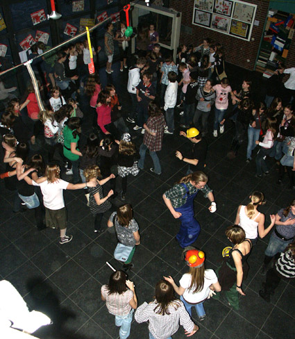 Am Freitag, dem 7.3.2008, um 18.00 Uhr starteten wir diesmal zum Anfang der Aktionswoche den perfekt geplanten Schülerball der SV. Dieser fand im Neubau statt. Da das Thema diesmal der Hammer war, war alles themenbezogen dekoriert. Doch zunächst traute sich keiner, so wirklich zu tanzen. Doch dafür sorgte die SV. Jeder von ihnen war als ein Bauarbeiter verkleidet. Doch als der DJ die richtige Musik krachen ließ, zog die SV uns einfach auf die Tanzfläche. Das steckte die anderen Schüler an und sie tanzten mit. Als es richtig dunkel war und es zum Tanzen nur wenig Lichter gab und die Tanzfläche immer voller wurde, kam es bei einigen schon zu kleinen »Unfällen«. Es wurde so wild getanzt, dass manche schon mal zu Boden stolperten.
