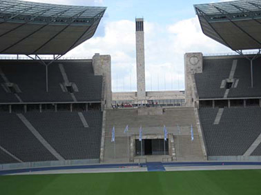 Antje Kater: »Der Führer der Tour durch das Olympiastadion hatte sich das Thema »Olympiade 1936« zum Schwerpunkt gesetzt. Nach und nach konnten wir auf unserer Entdeckungstour selbst herausfinden, dass die Olympischen Spiele 1936 keineswegs nur als sportliches Ereignis angesehen werden können, sondern als politische Demonstration von Weltrang. Die Nationalsozialisten versuchten Deutschland leistungsstark und weltoffen darzustellen und nutzten den Sport für ihre politischen Ziele. Dafür wurde das Berliner Olympiastadion als eine beeindruckende Kulisse entworfen: Die Architektur wurde gezielt für politische Zwecke eingesetzt und diente als Bühne. Das Stadion zog auch uns als heutige Betrachter noch in seinen Bann, was eine beeindruckende und zugleich bedrückende Erfahrung war.«