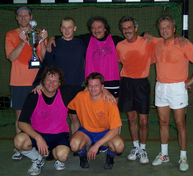 | Gruppentaktische Mittel des Angriffs und der Verteidigung gegen einen überheblichen Gegner in wettspielgemäßen Trainings- und Belastungsformen Home Chronik »Generations Cup« Fußballspiel 2005 | | | | | Eine Lehrstunde Von Hans Stemmerich | Nachdem die Lehrer im letzten Jahr 2:5 verloren hatten, weil mehrere Pädagogen verletzt waren, sollten die SchülerInnen am 4. November 2005 wieder in den Genuss einer Lehrstunde kommen. Thema der Lehrstunde: Gruppentaktische Mittel des Angriffs und der Verteidigung gegen einen überheblichen Gegner in wettspielgemäßen Trainings- und Belastungsformen | | Instrumentelles Konditionieren ist das Lernen am Erfolg | Als oberstes Lernziel hatten wir die Verbesserung der taktischen Fähigkeiten der SchülerInnen festgelegt. Der didaktische Leitgedanke bestand in der Hypothese, dass die Lernenden nach einer perfekten Demonstration durch imitierendes Lernen selbständig Lernfortschritte erzielen. Dabei sollte das Verfahren des instrumentellen Konditionierens, also das Lernen am Erfolg, angewendet werden. Bereits um 16.30 Uhr betraten die ersten SchülerInnen die Turnhalle. Wie üblich kamen einige zu spät, was wir aber großzügig duldeten. Durch freudiges Begrüßen und Aufwärmen alter Geschichten konnten wir die für den Lernprozess notwendigen positiven reziproken Affekte auslösen. | | Besserer Start für die SchülerInnen: Mit zwei Toren in Führung | Das Spiel begann mit einer kurzen Lehrerdemonstration der gruppentaktischen Mittel der Verteidigung, nämlich Verteidigen in Unterzahl, Verteidigen in Gleichzahl und Verteidigen in Überzahl. Die gruppentaktischen Mittel des Angriffs wurden anfangs noch nicht thematisiert. Herr Hischemöller und Herr Czischke zeigten zunächst gekonnt, wie man sich erfolgreich zu zweit gegen fünf Angreifer behaupten kann. Bereits während der Demonstration der unterschiedlichen Defensivkonzepte suchten die SchülerInnen eigenständig nach Lösungsmöglichkeiten, um gegen die vorgestellten Deckungssysteme erfolgreich vorgehen zu können. Die Lehrer ließen sie nach dem Prinzip des entdeckenden Lernens agieren, und gewährten ihnen zu Unterrichtsbeginn sogar einige Torschüsse, obwohl das Teillernziel dieser Unterrichtsphase die Verbesserung der eigenen Defensive war. Selbstverständlich fanden die SchülerInnen keine Mittel, gegen die routinierte Abwehr zum Erfolg zu kommen. Als erfahrener Pädagoge weiß man aber, dass Lernaufgaben zwar leistungsherausfordernd, aber nicht unlösbar sein dürfen. Deshalb lenkte der Pädagogenkeeper Herr Heidelberg einen von Olaf G. mäßig scharf geschossen Ball, der sehr wahrscheinlich knapp am Tor vorbei gegangen wäre, unauffällig mit beiden Händen um den Torpfosten ins eigene Tor. Er setzte diese billige Motivationshilfe so geschickt ein, dass die SchülerInnen an eine eigenständige Lernleistung glaubten und anschließend voller Begeisterung weiter auf das Lehrertor anrannten. | | Völlig planlos nach vorn: jubelnde SuS | Der versierte Pädagoge Herr Heidelberg, Kampfsportler mit Einserexamen, wandte das gleiche Unterrichtsmittel noch ein zweites Mal erfolgreich an: Nach einem durchaus gelungenen Distanzschuss von Michael S., der genau auf seinen Kopf gezielt war, duckte er sich so geschickt ab, dass der Ball knapp über seinem Kopf ins Tor traf. Die SchülerInnen glaubten wieder an ein regulär erzieltes Tor, jubelten und fuhren fort, völlig planlos nach vorn zu stürmen. Die Stimmung unter den SchülerInnen war so positiv, dass sonst eher selten anzutreffende altruistische Effekte ausgelöst wurden: Eigenständig ließen sie sogar den mittlerweile leicht adipösen Johannes H. und den etwas übereifrigen Martin I. mitspielen, die normalerweise von den Protagonisten vom gemeinsamen Spiel ausgeschlossen werden. Leider ließen die SchülerInnen das Lernziel dieses Unterrichtsabschnittes, die Anwendung gruppentaktischer Mittel der Verteidigung, völlig außer Acht, so dass die Lehrer nach dem Prinzip des einsichtigen Lernens einen stummen Impuls setzen mussten: Ohne die SchülerInnen zu informieren wechselten sie zum zweiten Hauptlernziel dieser Stunde: Gruppentaktische Mittel des Angriffs (Anbieten/Freilaufen, Direktspiel, Doppelpass, Hinterlaufen, Übergeben des Balles, angetäuschter Doppelpass, vor das Tor passen, vor das Tor flanken, von den Außenpositionen zurückpassen). | | Mit traumwandlerischer Sicherheit: Anschlusstreffer durch Herrn Schröder | Die einleitende Demonstration verlief planmäßig: Herrn Stemmerich bekommt an der Mittellinie auf halblinker Position den Ball und dribbelt Richtung Tor genau auf den kompromisslosen Verteidiger Rolf L. zu. Linksfuß Herr Goder kommt über die nun freie linke Außenbahn, erhält den Ball und passt direkt vor das Tor auf den herein gelaufenen Herrn Schröder, der die Chance mit traumwandlerischer Sicherheit zum Anschlusstreffer nutzt. Das erste Lernziel der Lehrer war nicht erreicht worden, die SchülerInnen hatten keines der demonstrierten Verteidigungsmittel angewandt. Schade! Um den SchülerInnen dieses unakzeptable Lernverhalten transparenter zu machen, erhöhte Herr Schröder noch vor der Halbzeitpause nach einer perfekten Direktkombination aus der Abwehr heraus zum 2:2-Pausenstand. | | Das schönste Tor des Tages: ein Distanzschuss von Herrn Hischemöller | Zu Beginn der zweiten Halbzeit waren die SchülerInnen wieder sehr eifrig bei der Sache, leider nicht mehr so konzentriert wie zu Spielbeginn. Animiert von den schönen Angriffsdemonstrationen der Lehrer, warfen sie nun alles nach vorn – vernachlässigten dabei aber die Abwehr total. Sie ließen Herrn Stemmerich völlig ungedeckt vor dem eigenen Tor stehen, so dass dieser nach einem präzisen Zuspiel von Herrn Schröder den Ball problemlos zum 3:2 verwandeln konnte. Er hatte sogar Zeit, den Ball spektakulär im Liegen einzunetzen. Als Herr Schröder dann selbst noch das 4:2 per Vollspann schoss, ließ die Mitarbeit der SchülerInnen merklich nach. Auch durch le