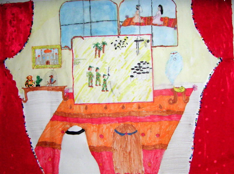 Orient – Mythos und Realität | In Anlehnung an die diesjährige Aktionswoche »(K)eine Fata Morgana« der SV haben wir im Kunstunterricht das Thema Orient aufgegriffen, um einmal die allgegenwärtigen mythischen Seiten des Morgenlandes den aktuellen Problemen der Region gegenüber zu stellen. Dieser problemorientierte Ansatz bedarf einer inhaltlichen Vertiefung, die im Fach Kunst überwiegend auf der visuellen Ebene stattfinden. Die Schülerinnen und Schüler haben Zeitungsausschnitte oder Bilder aus Reiseprospekten gesammelt, Hintergrundinformationen gefunden und sich Ausschnitte von verschiedenen arabischen Fernsehsendern angeschaut. Der bildliche Darstellung des so gefundenen Gegensatzpaares bzw. deren Überschneidungen »Mythos Realität« wurden im Unterricht keine Grenzen gesetzt. |