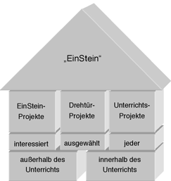 | Die Teilnehmerinnen und Teilnehmer tragen ihre Arbeitszeiten in ein Projektheft ein und lassen dies von den jeweiligen Fachlehrerinnen oder Fachlehrern abzeichnen. Feste Arbeitszeiten in der Woche werden vereinbart. Eine Projektbetreuerin oder ein Projektbetreuer steht zur Verfügung. Ein Beratungsteam koordiniert die Projektgruppen. Projektgruppen erhalten einen Werkstattschlüssel und einen Arbeitsraum. |