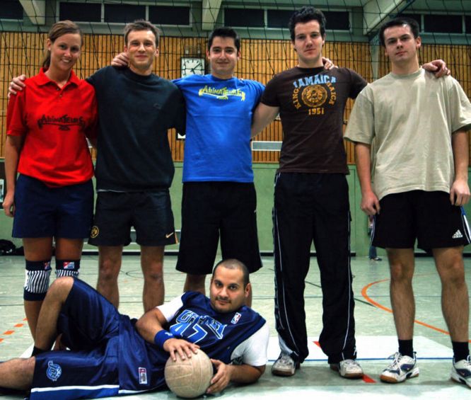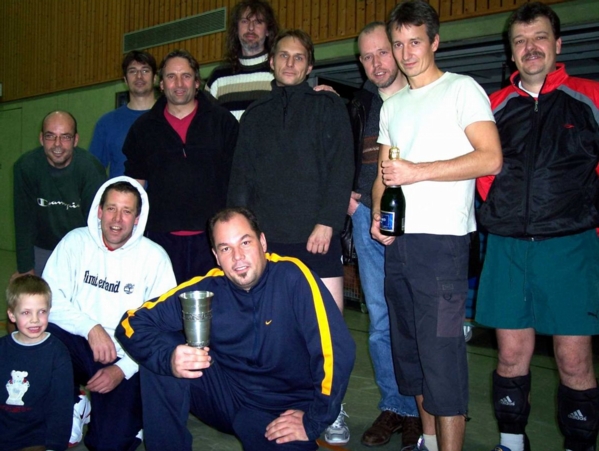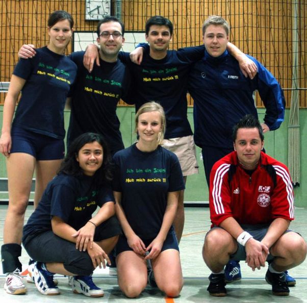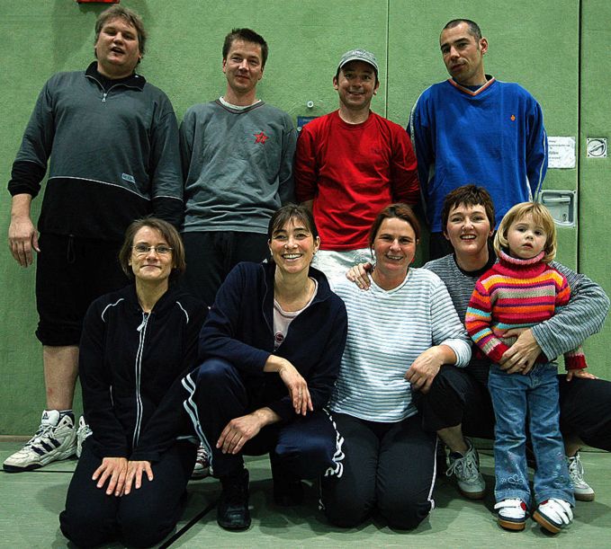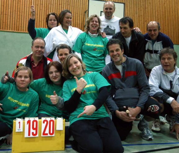 | Das »Team 6 und 8ziger« konnte leider nicht komplett antreten, weil Susi Stern (Veldtrup) schwanger ist und Peter Veldtrup und Andrea Plechaty zum Urlaub in Vietnam waren. Markus Fischer musste aushelfen und dank eines überragenden Thomas Sibowski und eines mit besonderem Durchblick spielenden Torsten Hagedorn wurde der fünfte Platz erobert. |
