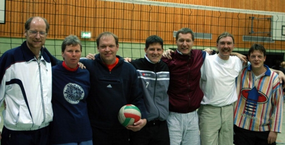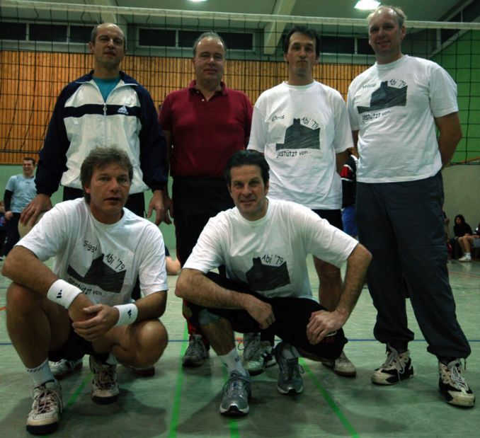 | Die »83er Spätlese« hat es wieder mal geschafft, und das sogar ohne Ex-Nationalspieler Andreas Overmann (Bandscheibenvorfall)! 2001 holten sie als »Ruhrpott-Kanacken« zum ersten Mal den Martin-Hirschmann-Gedächtnis-Pokal. 2005 zeigten sie sich in erlesener Spätform – ein würdiger Sieger aus einer Zeit, in der Volleyball an unserer Schule trotz niedrigerer Halle noch einen höheren Stellenwert hatte. |