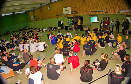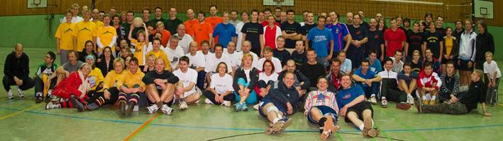 Markus Fischer stellte in gewohnt souveräner Manier die Organisation des Turniers vor und kontrollierte die Anwesenheit der gemeldeten Teams. Es wurden zwei Siebener- und eine Sechsergruppe gebildet. In der Sechsergruppe spielte jeder gegen jeden. Aus zeitlichen Gründen war dies in den beiden größeren Gruppen nicht möglich, so dass dort (nach dem Zufallsprinzip) zwei Spiele pro Mannschaft gestrichen wurden. Bei diesem Spielmodus kommt es zwangsläufig zu Ungerechtigkeiten, da nicht jedes Team auf gleichstarke Gegner trifft. Geplant war, dass die Gruppenersten, die Gruppenzweiten, die Gruppendritten usw. eine Rangliste ausspielen sollten, so dass am Ende jede Mannschaft gleich viele Spiele gemacht hätte. Am Ende der Vorrunde war jedoch klar, dass wir niemals um 20.00 Uhr im Campus sein könnten, wenn wir uns an den vorgesehenen Spielplan halten würden. Deshalb entschlosssen wir uns, nur die Plätze 1-9 auszuspielen, was bei einigen Teilnehmern auf verständlichen Unmut stieß. In der folgenden Mannschaftsvorstellung ist daher nur für die ersten neun Teams die Platzierung angegeben.