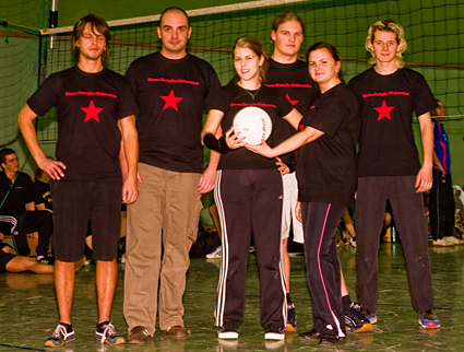 Die Siegermannschaft »Abimateure II« konnte bei der Siegerehrung nicht vollständig erscheinen, Felix und Sebastian mussten sich von den Strapazen des Turniers zu Hause erholen.Das 15. Ehemaligen-Turnier war eine stimmungsvolle und würdige Jubiläumsversanstaltung. Wegen der großen Anzahl der teilnehmenden Mannschaften war eine zeitliche Straffung notwendig, woduch einige Mannschaften benachteiligt wurden. Im kommenden Jahr wollen wir den zeitlichen Druck aus dem Turnier nehmen und fangen deshalb, wie im Campus per Akklamation beschlossen, am 29.11.2008 schon um 15.00 Uhr an. Es gibt Gerüchte, dass sich auf der Party einige Mannschaften zum gemeinsamen Training im Seepark verabredet haben. Den Erfolg werden wir hoffentlich beim nächsten Turnier sehen.