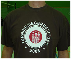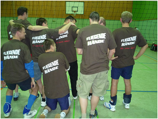 Im vergangenen Jahr waren „die fliegenden Hände“ die einzige Mannschaft, die den Turniersieger bezwingen konnte. In diesem Jahr glückte ihnen das Kunststück zum zweiten Mal! Die „2008“ im Logo ihres T-Shirts zeigt, dass die Mannschaft noch nicht genügend Selbstvertrauen hat.